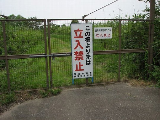 元々この通路は、湖に浮かぶ浮島の工事関係者の車両が通る道なので、万一入ってから注意されてもつまらないので止めときました。でも本当は、蛇が出そうで怖いから止めにしたんです。